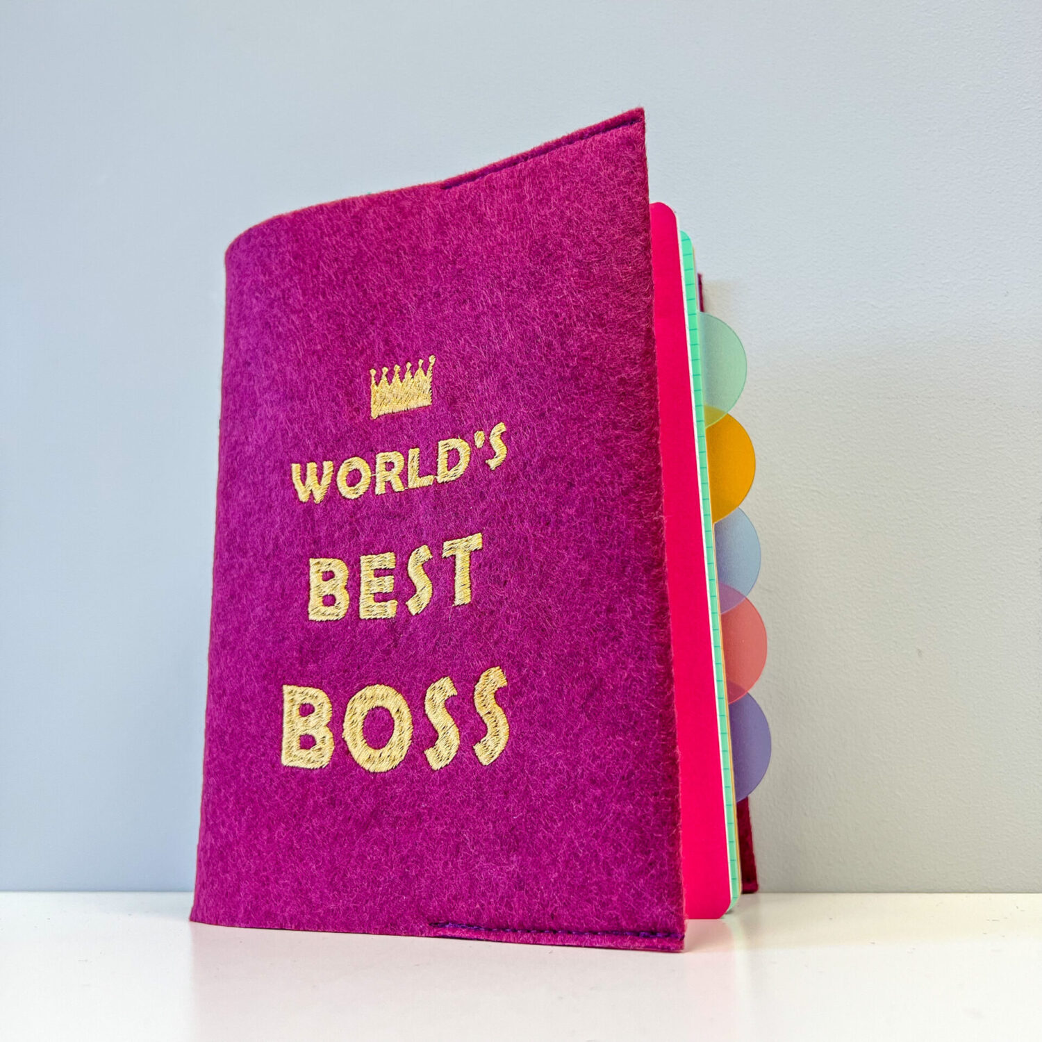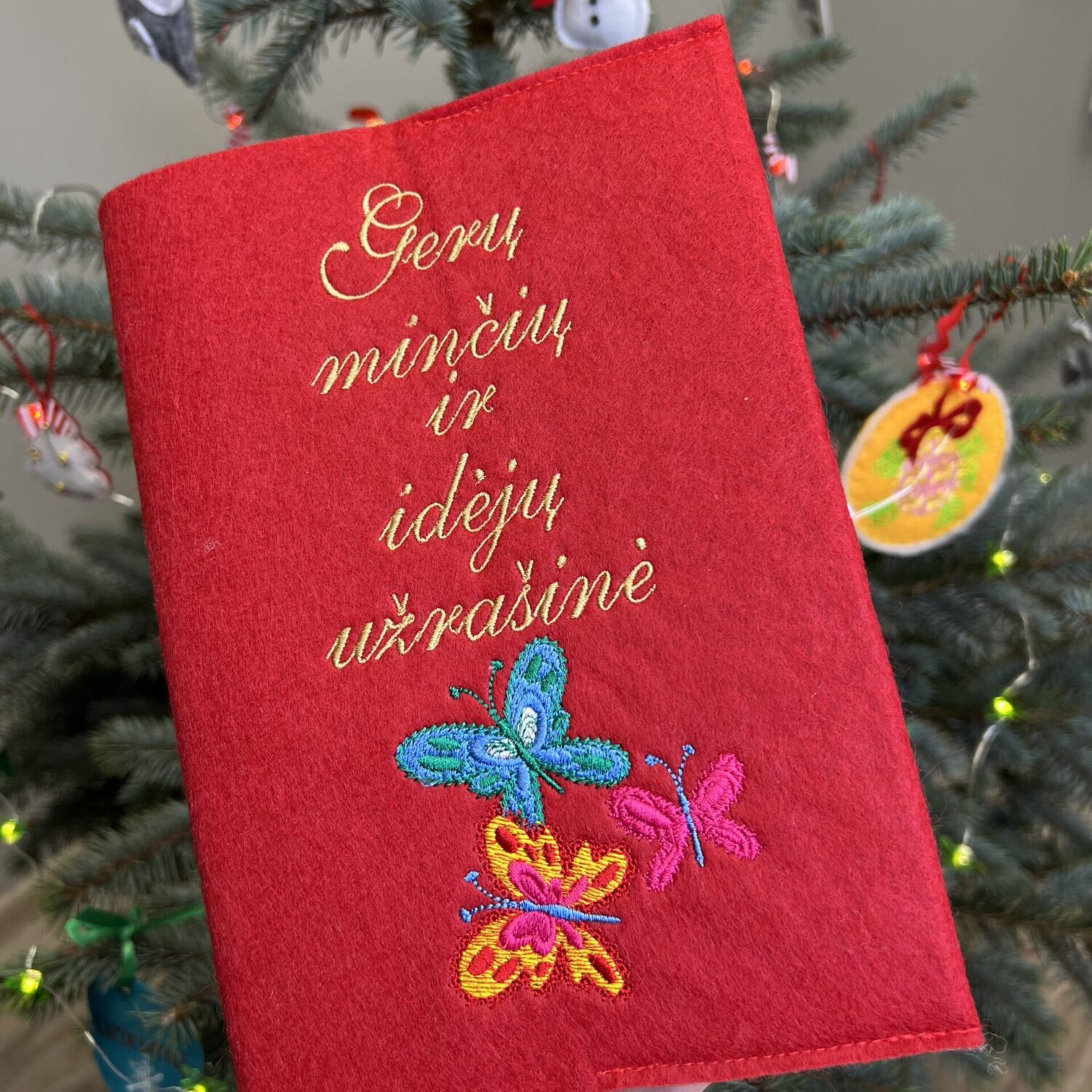 Išsiuvinėtas veltinio aplankalas su užrašų knygute viduje „BOSEI”