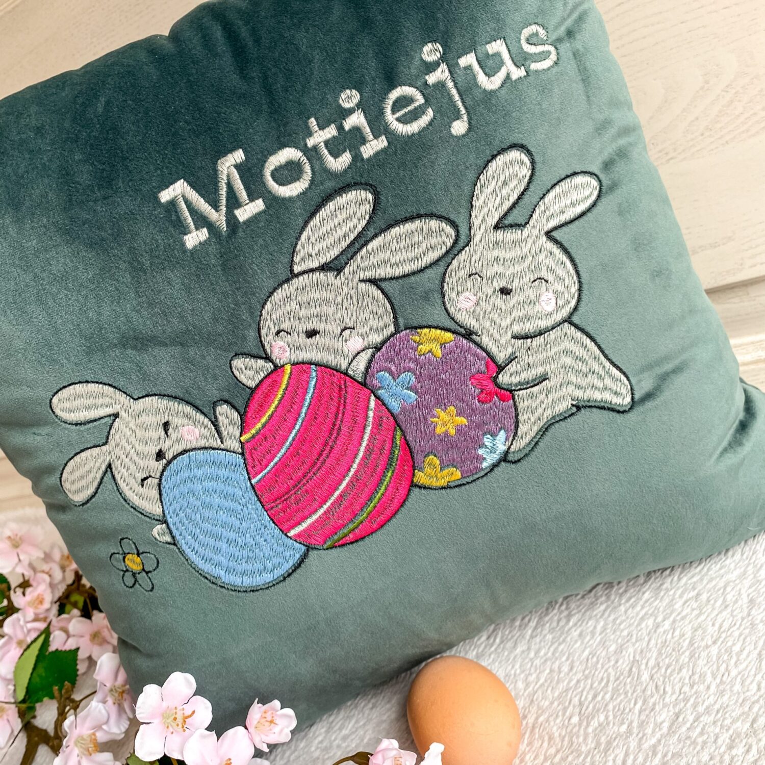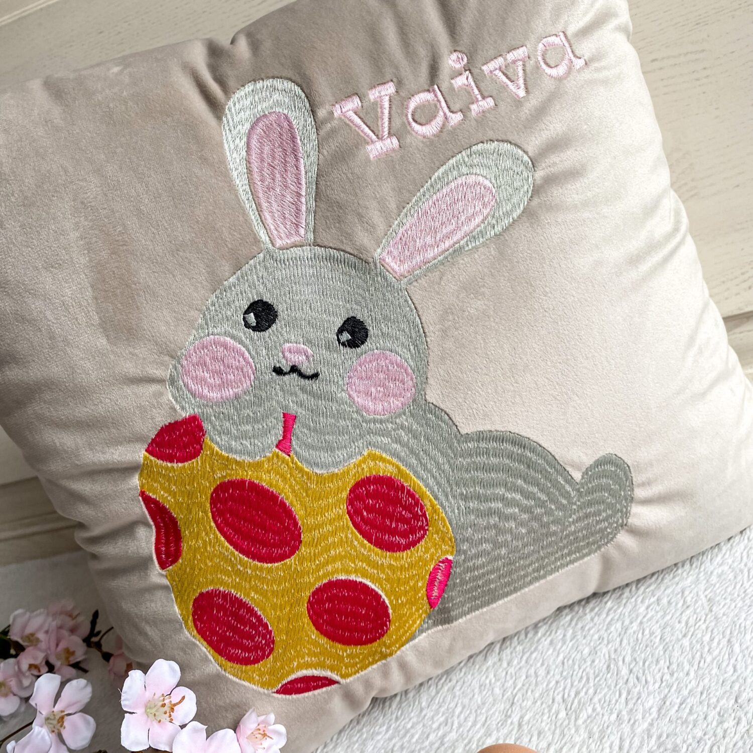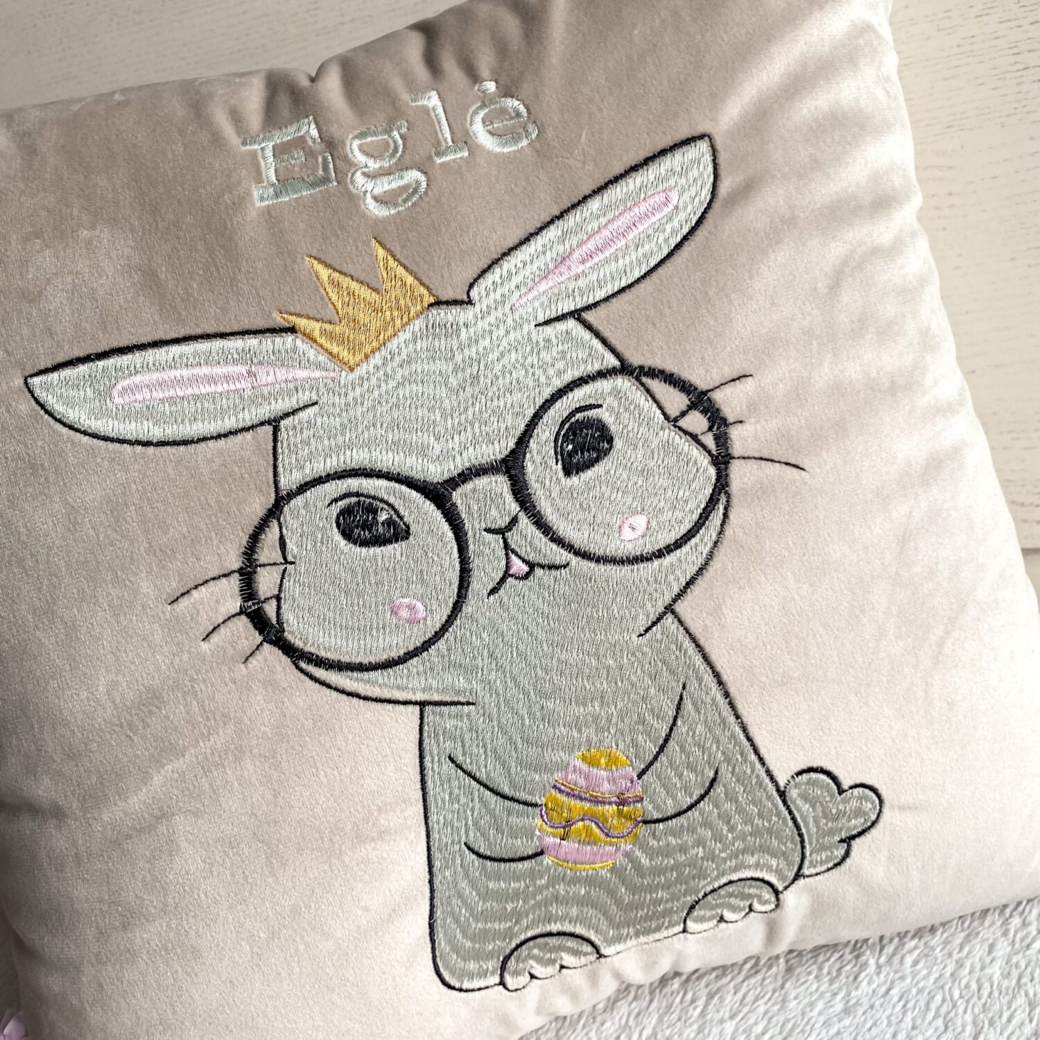 Dekoratyvinė pagalvėlė „Zuikis su margučiu”