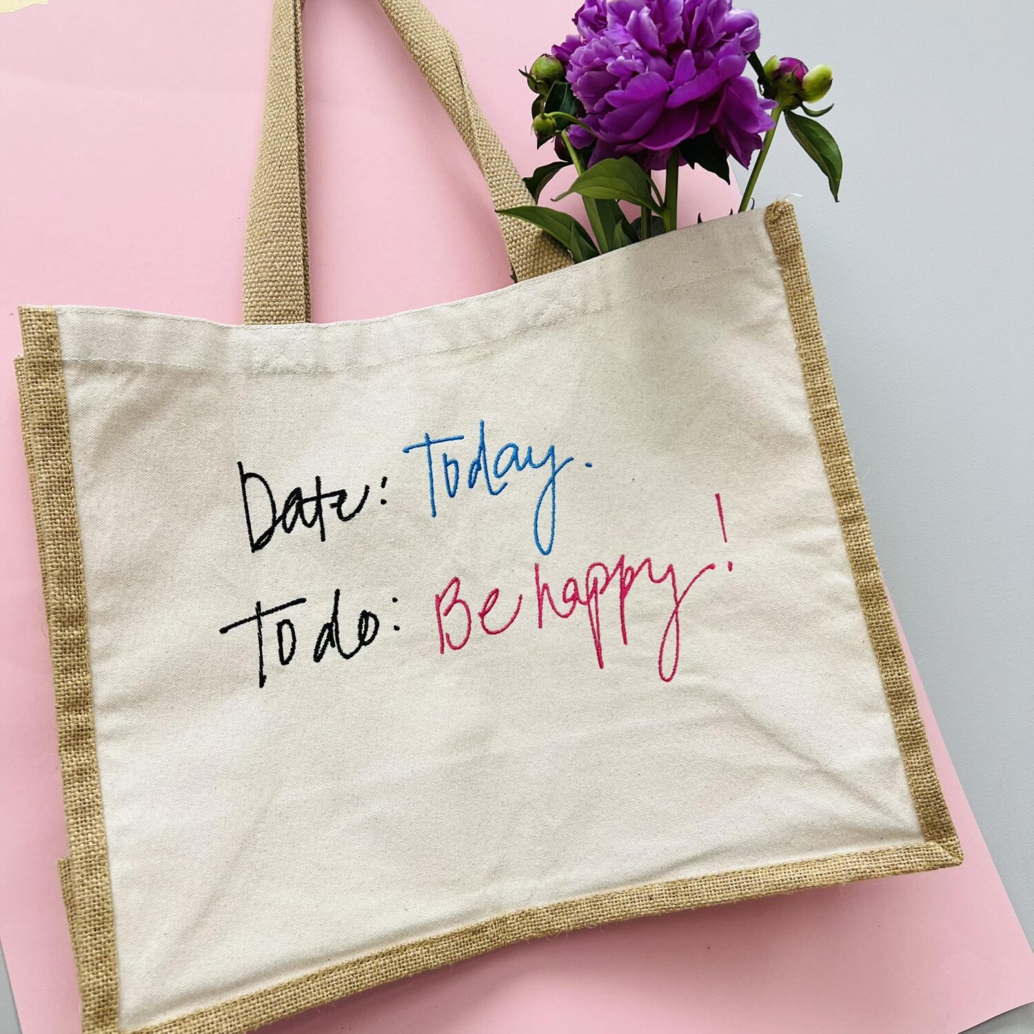 Džiuto krepšys „Date: Today. To do: Behappy!”