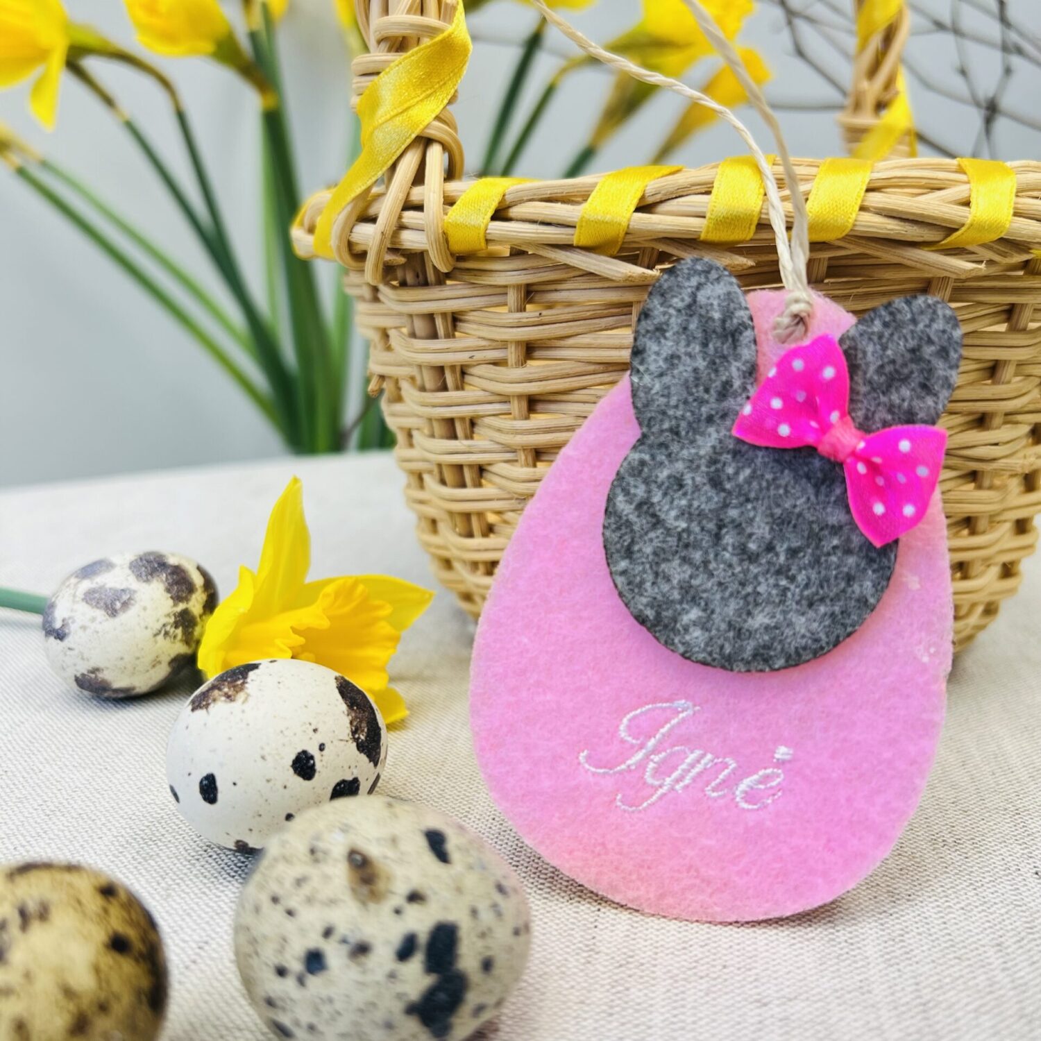 Personalizuotas kiaušinis su išsiuvinėtu vardu.