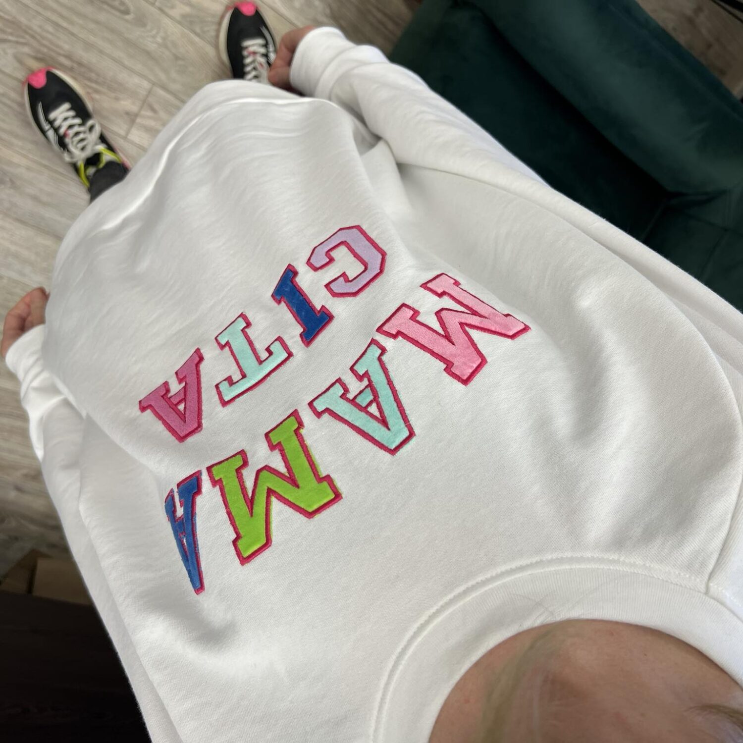Džemperis su išsiuvinėtu rankogaliu”TĖTIS”