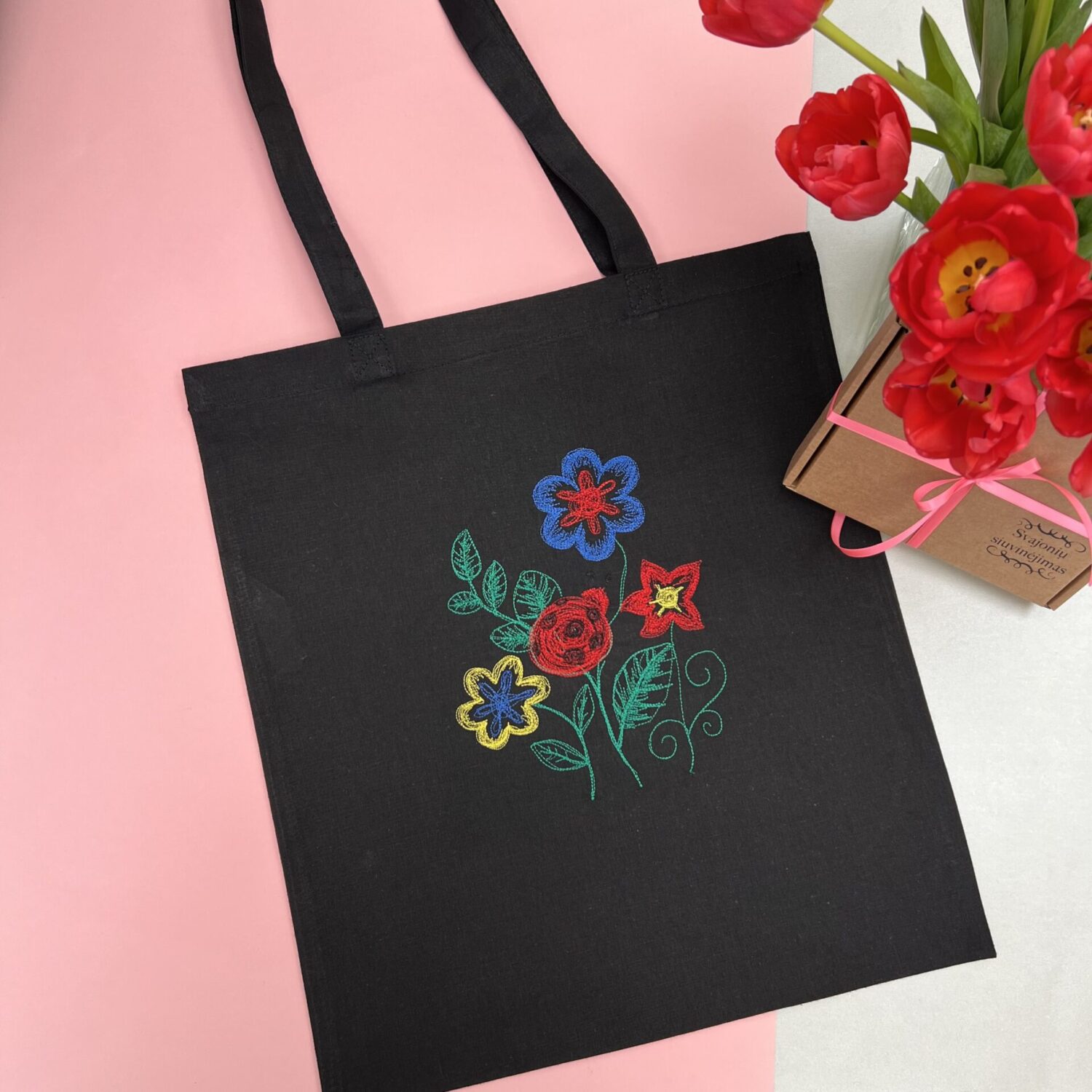 Medvilninis pirkinių maišelis „Gėlėtas”