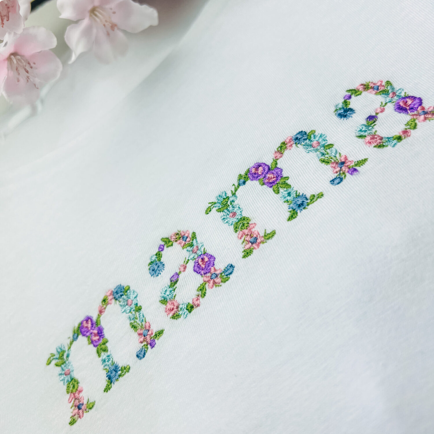 Marškinėliai mama arba močiutė žodžiai išsiuvinėti iš gėlyčių