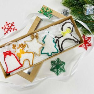 Rankų darbo Kalėdų eglutės žaisliukai.🎄 Komplekte rasite Rudolfą, eglutę, žvaigždutę, arkliuką ir varpelį🎄
